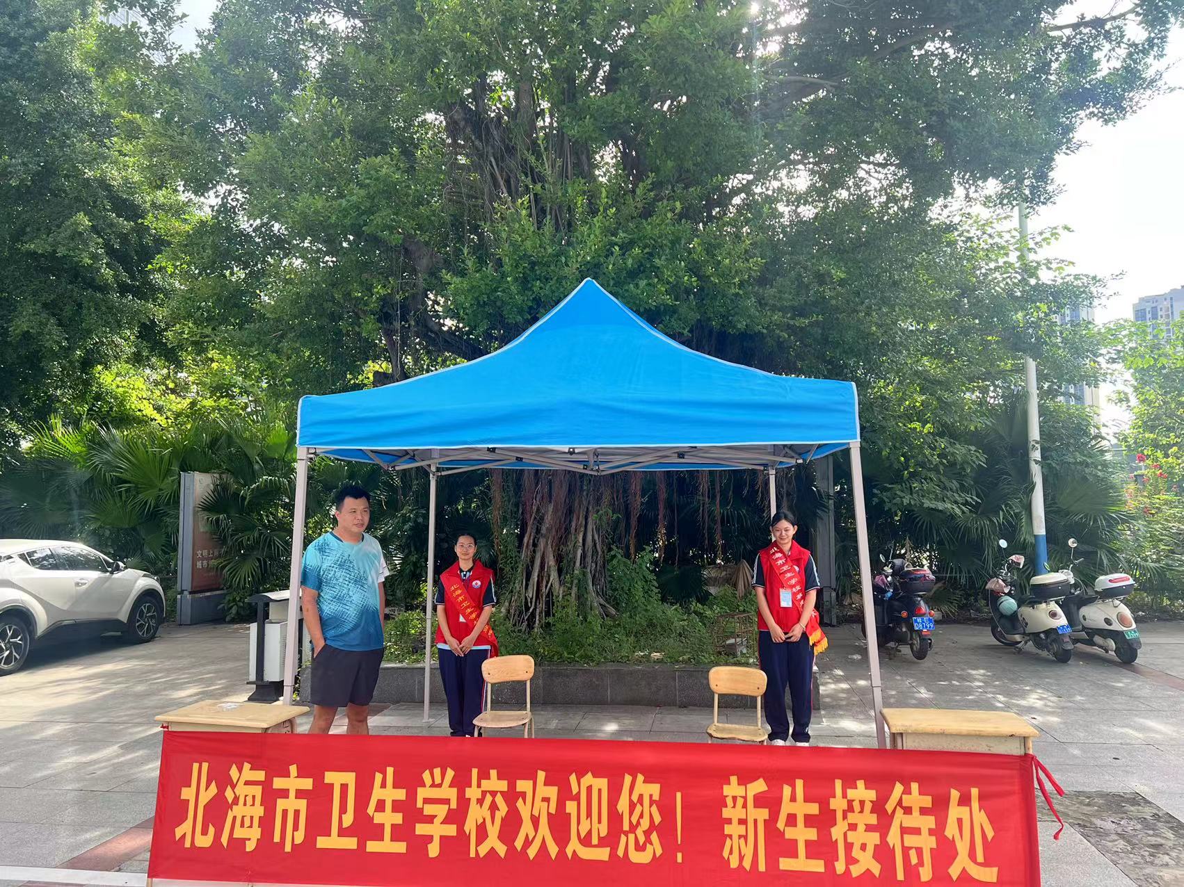为确保迎新工作高效有序开展,学校提前召开开学工作暨校园安全部署会,制定《北海市卫生学校2025级新生入学接待工作方案》《2025级中职班主任工作指导手册》等迎新工作方案,全面规划、细致安排各项迎新流程。学生处联合后勤、保卫、团委等部门制定《北海市卫生学校2025级新生报到流程》,明确流程节点,组建“党员先锋队”“志愿者服务团”协助完成迎新工作;校园内设置新生报到点、招生咨询处、收费处、行李放置处、一卡通办理点等功能区,悬挂迎新标语,布置“新生打卡墙”“专业特色展板”等互动场景。同时开通“线上预报名”通道,提前完成新生信息录入,为现场报到提速增效。