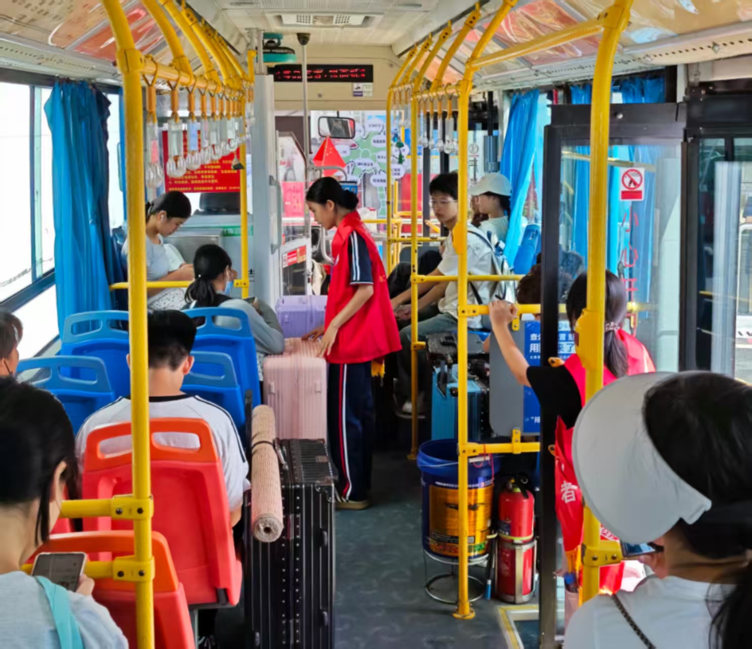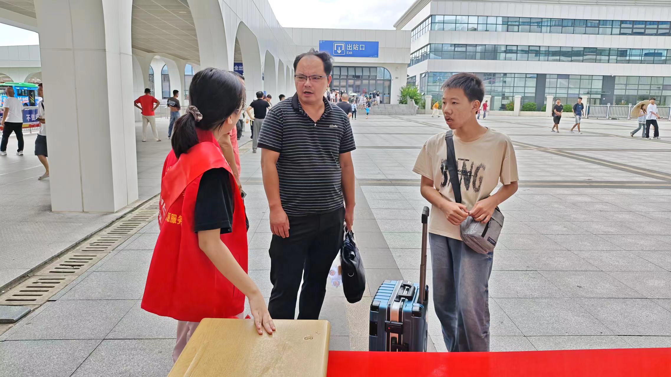 8月30日早晨,学校迎新专车分赴汽车站、动车站,师生志愿者身着统一服装,手持引导牌在出站口形成“人工导航带”,为新生提供“一对一”接站服务。在车站设立“接待处”,协助行李较多的新生快速转运,实现“出站即见笑脸,上车即感温暖”的贴心服务。