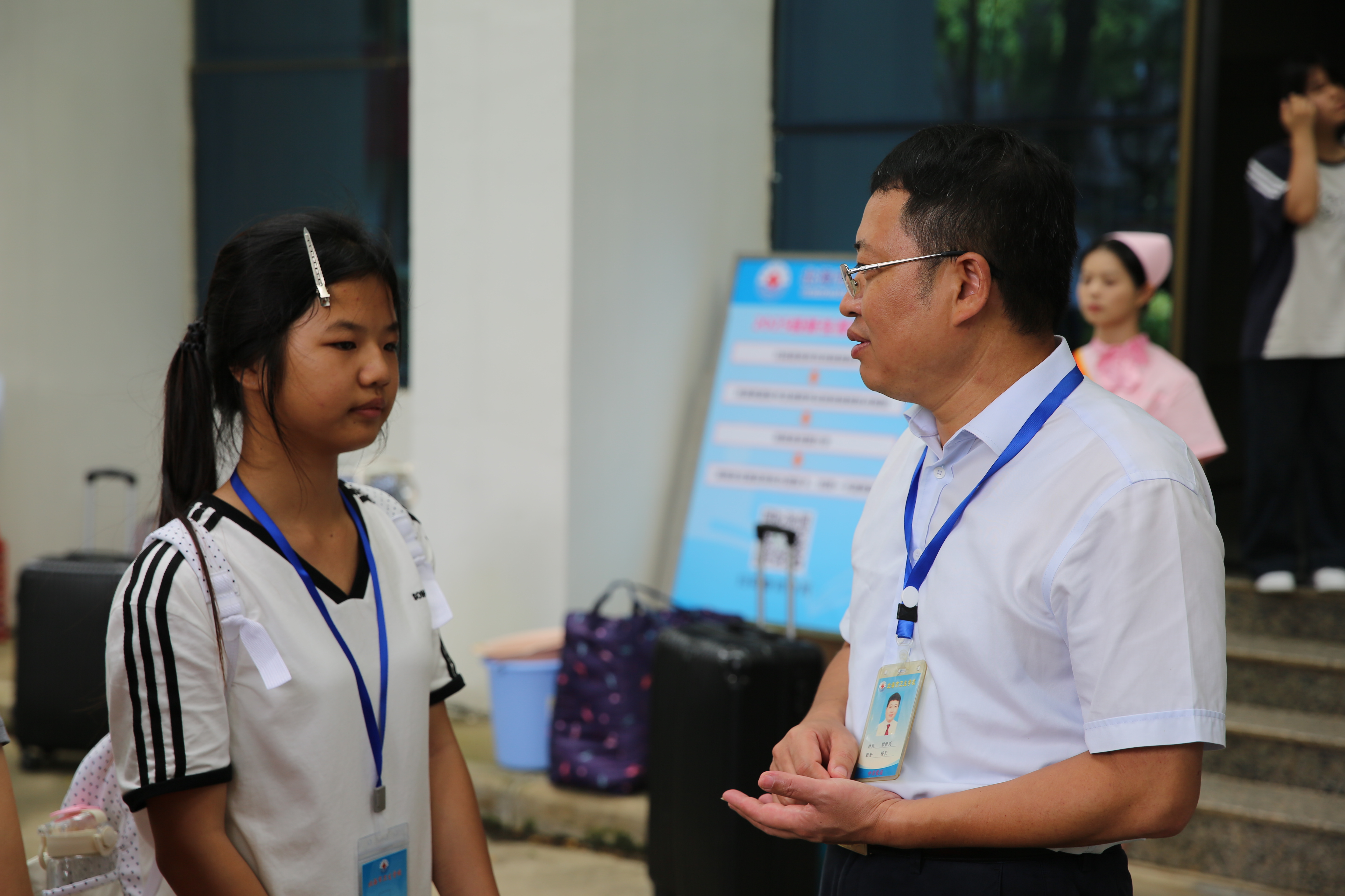 迎新现场布局科学、分区明晰,各环节衔接紧密、秩序井然。校门口处,安保人员身姿挺拔、指挥若定,有序引导送学车辆分流停放,耐心疏导人流车流,为新生及家长开辟出一条安全畅通的入校通道;咨询台前,教师们面带微笑、专业细致,针对专业选择、食宿条件等新生关切的问题逐一耐心解答,驱散学子心头的迷茫;入学手续办理区,老师们操作熟练、高效严谨,快速完成信息核验、档案接收等流程,让新生及家长少跑腿、少等待;志愿者们则化身“校园百事通”,穿梭于人群之中,主动帮提重物、精准指引路线、生动介绍各类场馆,用热情与活力帮助学生和家长尽快熟悉校园;举办北海市卫生学校2025年秋季学期家长会,学校党委副书记、校长罗世兴向家长全面介绍学校发展与学生在校情况,切实回应家长诉求,共同为学生成长保驾护航。这一系列贴心举措,缓解了新生初入校园的拘谨与不安,让他们真切感受到“北卫大家庭”的归属感。在家长们絮絮的叮咛与殷切的注视中,新生们怀揣憧憬,有序完成报到注册、宿舍分配等流程。从初入校门时的青涩腼腆,到熟悉环境后的自信从容,眼中满是对未来学习生活的期待,顺利融入这片充满希望的校园。
