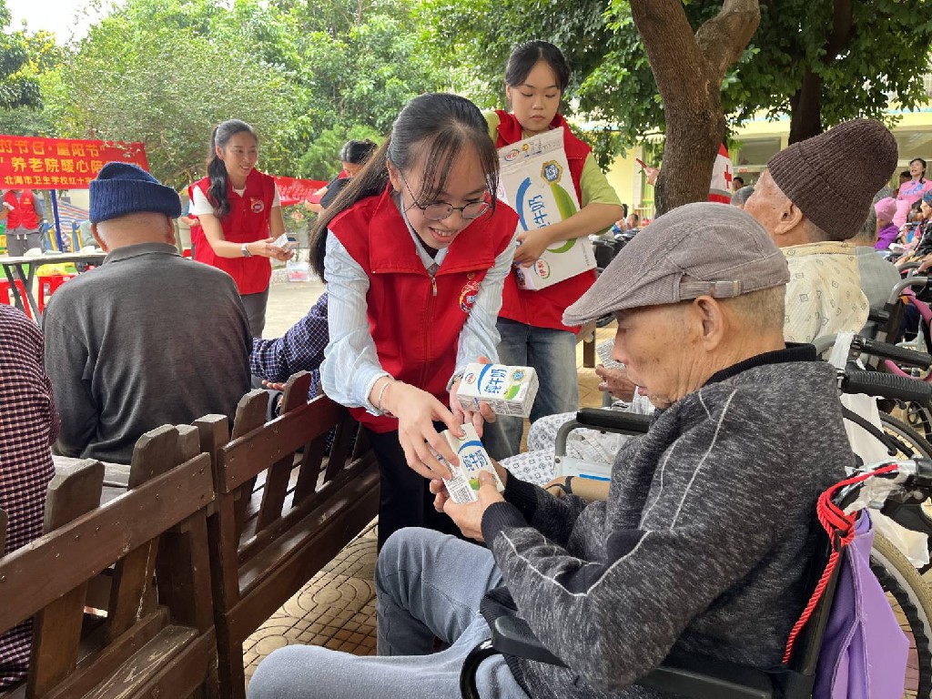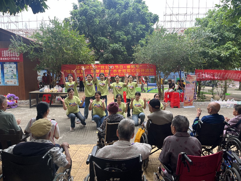 金秋送爽,丹桂飘香,值此重阳佳节,为大力弘扬中华民族尊老、敬老、爱老、助老的传统美德。2025年10月29日,北海市卫生学校学生党支部联合北海市红十字会,组织30余名师生志愿者赴银滩养老院开展“情暖金秋,乐享桑榆”养老院暖心陪伴活动。