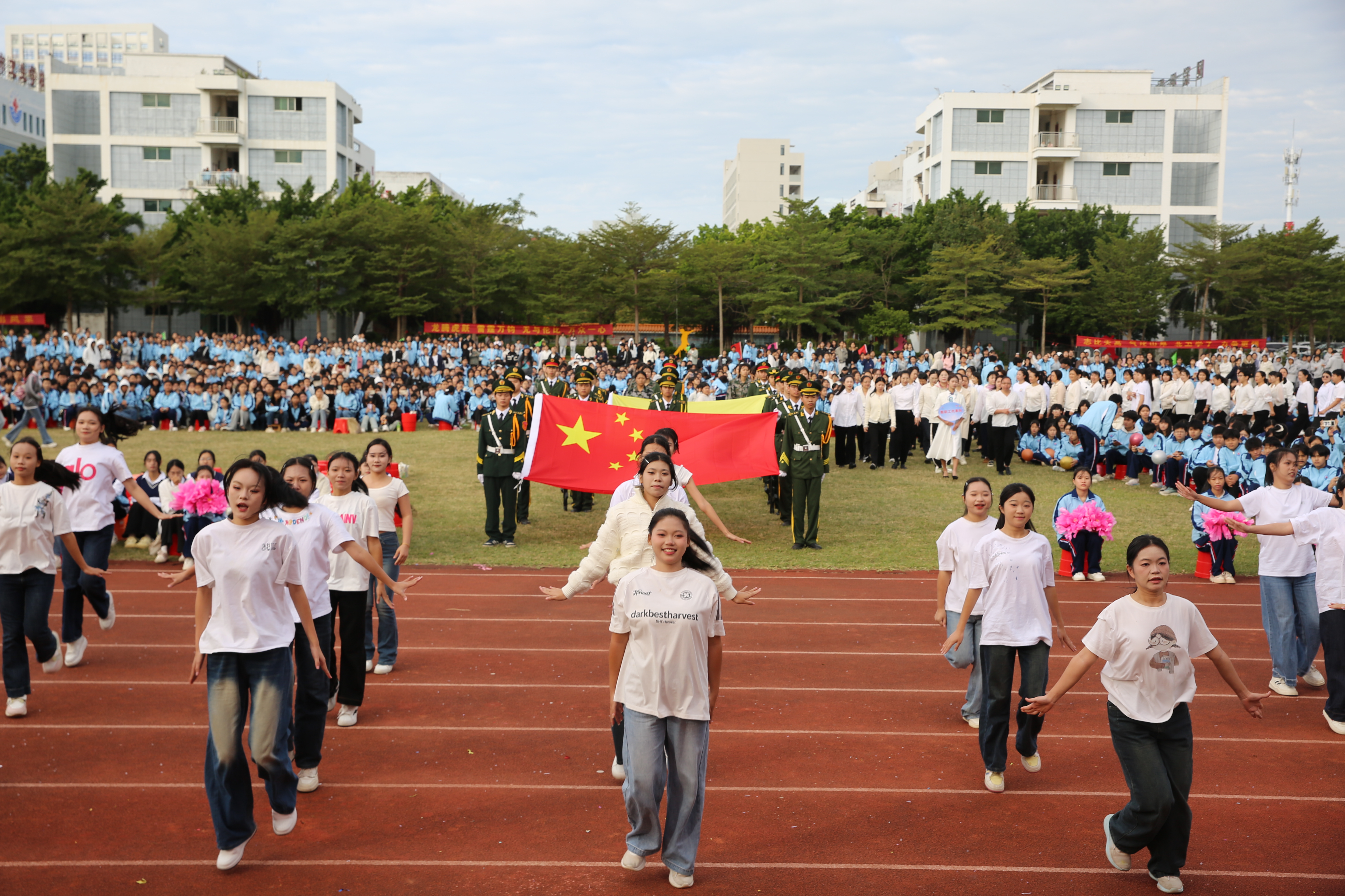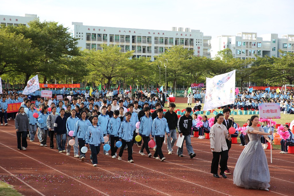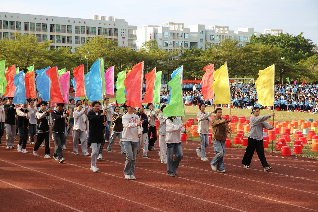 开幕式上,国旗队庄严引领,鲜花队与彩旗队缤纷相随,各班级方队、教职工方队及社团方队依次精彩亮相,步伐整齐、意气风发,展现出我校师生团结进取、多元共融的精神风貌。随后,校长罗世兴致开幕词,勉励全体运动员发扬体育精神,赛出风格、赛出水平。最后,党委书记洪肇春庄重宣布:“我校第二十届运动会开幕!”——铿锵之声回荡校园,正式拉开本届运动会的序幕。